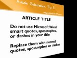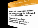 Article submission guidelines need to be followed to be sure your article is published. Article submission can be a great way to achieve good search engine ranking and get valuable backlinks. Learn how to submit articles by following our quick tips. Check out Easy Push Button Traffic for a fast way to submit articles. http://easypushbuttontraffic.com
