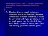 http://www.squidoo.com/Morning-Sickness-Cures-2. Morning sickness can differ in various women. Some may experience mild symptoms while others will experience severe symptoms. However, there is no one solution that works for all but there are things you can do to alleviate the symptoms.