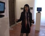 Joëlle Gonthier fait le tour du propriétaire de son exposition "Cent mètres de peintures" actuellement à Malves en Minervois au Centre Méditerranéen de l'Image.