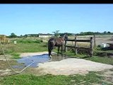Voici ma titoute longée avec un "enrênement maison" pour lui apprendre à rester en place et engager les postérieurs.