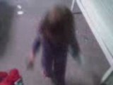 Meghan running around outside after it started to snow a bit at Yule Revel