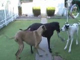 A video of Jaxie's activity during Heartworm Treatment. During this treatment, Jaxie's downtime is for 3 months. The video shows what Jaxie does during his brief outside time. A Caring Place Humane Society was contacted to rescue a 4 year old male Great Dane scheduled for euthanasia in a Mississippi pound. We talked to the folks there and saw videos and it appeared that Jaxie had a bad case of hip dyplasia. We transported him up north to Chicago, he saw our vet and it was diagnosed that Jaxie had two bad knees. Jaxie has had his first knee surgery and is now in physical therapy. We estimate that Jaxie's physical therapy will continue through January 2010 and after that the 2nd knee surgery will take place followed by more therapy. Jaxie should be available for adoption in April 2010.