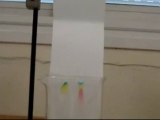 L'inspecteur Columbo mène l'enquête : suite à une expérience (passage d'un courant électrique dans un mélange de sulfate de cuivre et de dichromate de potassium), il constate la présence d'une auréole bleue et d'une auréole orange aux bords des électrodes. Il demande aux élèves de 3è de démontrer que des ions se sont déplacés et ont provoqués ce résultat. Lesquels ? Vers quelle borne ? Quelle est la nature du courant électrique dans une solution ionique ? T.D. Evaluation. Raisonnement déductif.