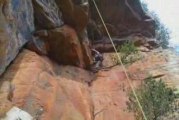 Rock climbing during the 2009 AMGA annual meeting in Moab, Utah. This is Jon climbing the Corkscrew Summit of Ancient Art at Fisher Towers. The entire pitch is a no-fall zone with dangerous pendulums and sketchy old pins! http://www.becknology.com