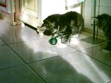 Chatons Norvégiens jouant à la balle