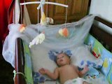 Mattéo heureux dessous le mobile de tonton.