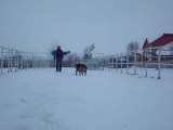 Whippets running happily in the snow.... :)