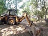 Premier coup de tractopelle sur le terrain