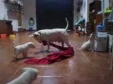 Jugando y Roderic ladrando
