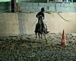 Grosse chute de cheval en tentant de sortir de l'enclos au galop..