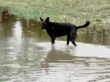 en cherchant des coypous (un rongeur pareil aux loutres) dans les marges du ruisseau