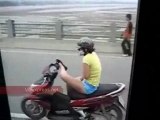 Di xe may bang chan tren cau Vinh Tuy