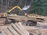 Dechargement du grumier sur le parc