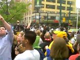 Part 10 of 10 (final) video I captured during the G20 protests (hi-def) in toronto at night, Saturday June 27 at 1:11am. Walking home past an angry protester. You see TONS of cops exiting the area and back on the bus. Must have been 200 cops in the area.