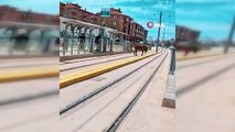 Eskişehir’de tramvay durağında raylara çıkan başıboş at şaşkınlık yarattı