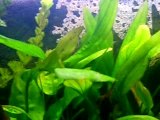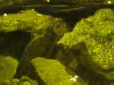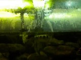 Distribution nourriture bac Tanganiyka où l'on peut voir des alevins brichardi en fin de vidéo