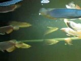 Tank of Cross-back. Main diet is market prawn. One Fei Feng to pick up food at the bottom and bring it to surface.