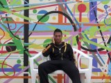 Pedro Barros skates a virtual globe.
