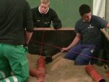 Video montrant la machine que nos quatre apprentis utilise en entreprise au Danemark à viborg pour oser des pavé rendement entre 700 et 1000 m2 par jour.