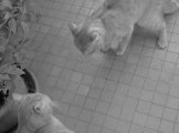 Patate qui se met debout pour attraper des sticks pour chats.