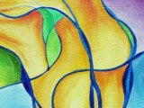 Après le travail de préparation de la toile de jute, vient celui de la création. Froissés, ses plis et sa trame m'hypnotisent, puis petit à petit je découvre des silhouettes, des formes, qui se dessinent. Je commence alors à poser la couleur, Ma couleur... Comme si des notes de musique découlaient de ces formes, où la toile aurait prévu sa propre orchestration. Je fixe mes couleurs sur ces portées imaginaires. Le résultat obtenu est chaque fois surprenant. Imaginez une partition que l'on pourrait lire de gauche à droite comme de bas en haut... et inversement. Une Toile n'a de limites que ses bords... et ses dimensions s'affichent ... instinctivement