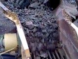 Alimentation et déstockage avec un chargeur à pneu d'un groupe mobile de concassage sur chenilles, concasseur primaire sur chenilles à mâchoires 1000x700 avec alimentateur à chaine, crible de 6m² sur chenilles et concasseur secondaire sur roues APK40, chargeur Komatsu WA470-6