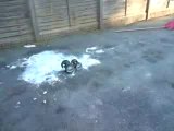 watch my r/c car go over a makeshift snowy thing