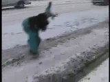 Car Ice Skating UK Lucky Accident People Jump Out Very Funny