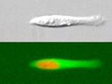 RPE1 cells migrating on a 4 µm wide track of fibronectin