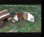 Cochons d'inde Shelty Coronet et Texel en couple, sortie au jardin