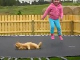 Déborah And Kitten - Playing In Trampoline