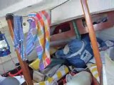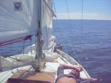 Gery et moi poursuivons notre route. De Madère aux Canaries, houle croisée d'ouest, vent dans les fesses, une moyenne de plus de 200 miles par 24h, c'est une belle vitesse pour le vieux Skohl, chargé jusqu'à la gueule. je sors la super 8 de temps en temps.. les quarts de 4 h à deux, ne me donnent hélas pas le temps de faire beaucoup d'images : nous ne lâchons pas la barre une seconde. et Skohl prend 150l de flotte par la jaumière, l'entrée du gouvernail dans la coque, depuis le départ...