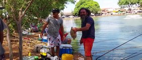 Pescadores desafiam o frio em busca de 30kg de peixe na 'Pesca no Lago'