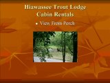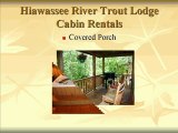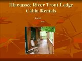 Hiawassee Trout lodge Cabin Rentals located in Hiawassee, Ga. has 11 cabins located on the Hiawassee river. These cabins are furnished with comfortable furniture a fully equipped kitchen and linen. We also have a conference center and pavilion. This provides an excellent location for your business meeting, reunion, special event or the perfect wedding. Call about winter rates that run through April. 4 nights Monday through Thursday $250