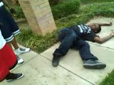 Dude gets knocked out for trying to walk pass the gate without permission