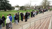 Students queue for antibiotics at the University of Kent as two people die from meningitis in the area