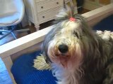 old english sheepdog with guinea pig babies