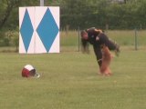 à savoir que le bâton, augmente énormément l'excitation, mais qu'elle n'en a pas peur, à l'entrainement précédent grand mouvement de bâtons au dessus d'elle, il s'en est servit + fréquemment ect....çà n'a rien changé.