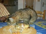 Cachou tente tant bien que mal de rentrer dans le sac des courses...