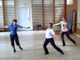 le duo de fin qui aurait du s'arrêter sur le dernier porté, est le résultat d'un travail autour de la matière chorégraphique proposée à la base.