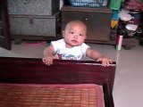Rin bám giường tập đi (9 tháng)