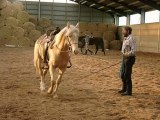Westernausbilder Peter Rellstab korrigiert eine ca. 10-jährige Haflinger-Quarter Stute, die als schwieriges Pferd galt, als sie in die Korrektur kam. Heute ist sie ein zuverlässiges Freizeitpferd.