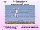 Contacta Dra. Sandra Montoya 01152 (656)623- 7693 Embarazo de alto riesgo, climaterio y menopausea, anticoncepcion, cuidados de la adolescente cirugia ginecologica y obstetrica, laparoscopia, colposcopia (lesiones del cervix)