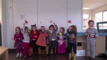 De leerlingen van het 1ste jaar muziekinitiatie leerden het liedje 'Er was eens een groen mannetje', waarbij het mannetje bij elke strofe van kleur veranderd. De leerlingen mocht zich nadien verkleden in de kleuren van de stroofjes en we hebben dit op video gezet als blijvende herinnering :)