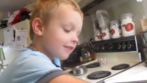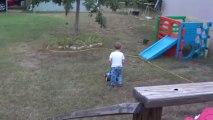 Tristan mows the lawn