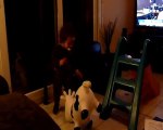 Stéphane et son chien Orion forment aux bons gestes de sécurité.