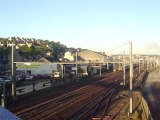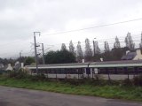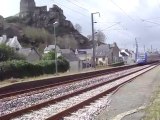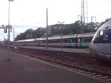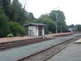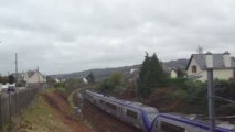 Arrivée à Guingamp le 09 octobre 2009 à 18h13, du TER n° 855681 en provenance de Saint-Brieuc et à destination de Plouaret-Trégor, assuré par l'autorail X2115 rénové (en tête) et un X2100 vert (en queue). Au fond voie 5 le TER pour Carhaix assuré par le X2139 rénové.