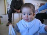 Idris joue avec la nourriture