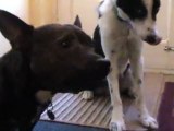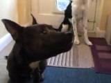 bull terrier with treats