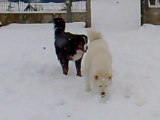 oliver mon akita inu qui s'amuse avec kenza mon carlin femelle